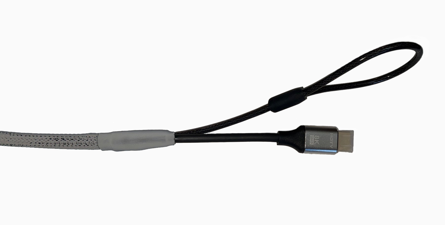 Like all cables sold by securecables.com, the patent-pending HDMI Security Cable with Gray Cable Jacket and Cable Jacket End Cover constructed with RF-shielding to minimize emanations and signal bleed. 4 length options are available for to suit customer needs. See more about the cable components, cable section labeling, construction process, and shielding materials on the FAQ page.