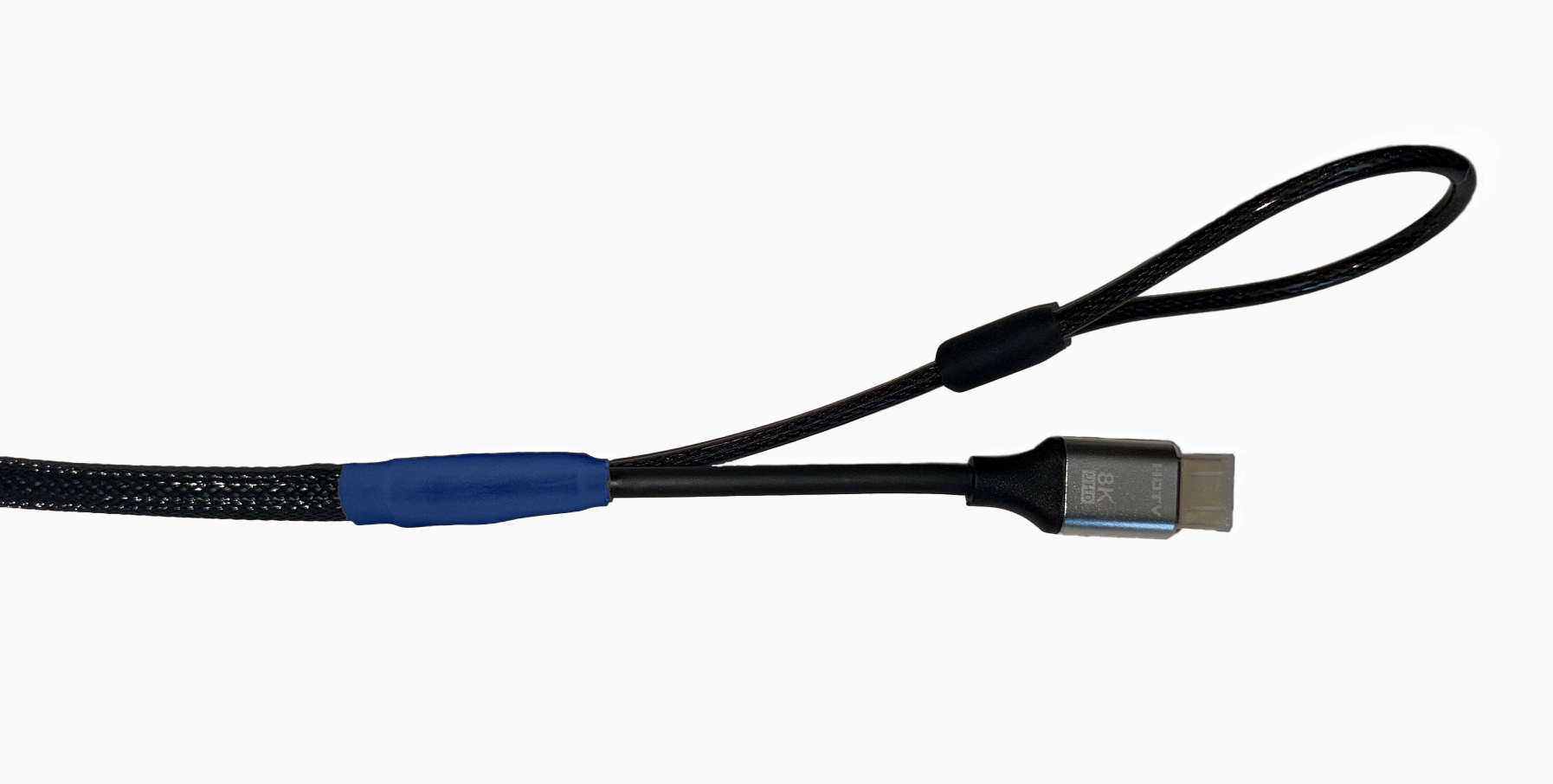 Like all cables sold by securecables.com, the patent-pending HDMI Security Cable with Blue Cable Jacket and Cable Jacket End Cover constructed with RF-shielding to minimize emanations and signal bleed. 4 length options are available for to suit customer needs. See more about the cable components, cable section labeling, construction process, and shielding materials on the FAQ page.